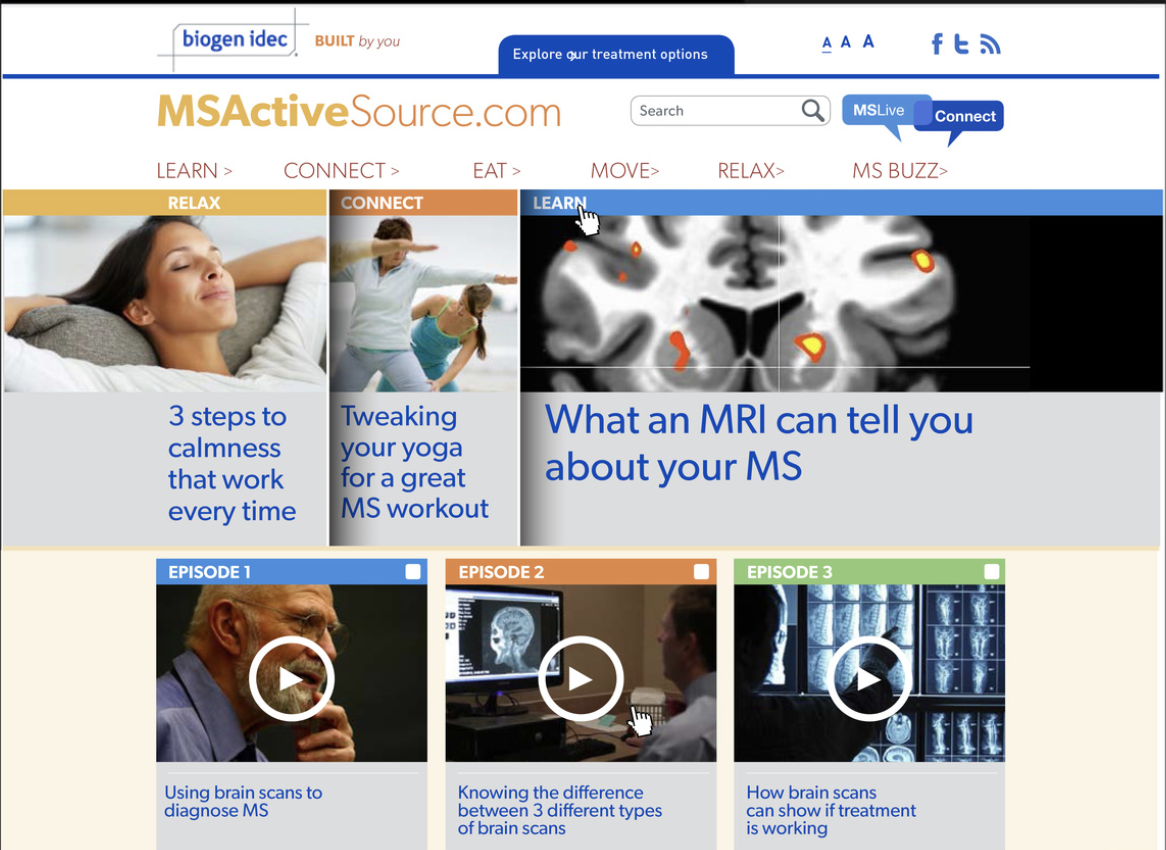 Tecfidera was a new player in the ever growing fight to com- bat Multiple Sclerosis. We felt that we wanted to position the solution to be about the patient and we created a “me” character that was soft and feminine as MS afflicts mostly women. We used “me” to speak to how Tecfidera has allowed her to suppress her attacks. Me was friendly, warm and relatable in what she talked about.
